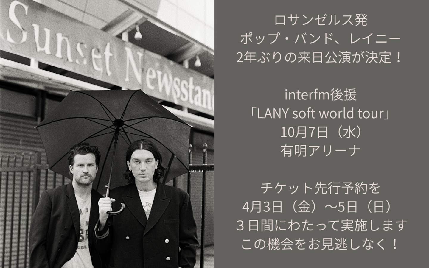 NOW ON AIR 27:00-28:50THE GOOD MIXER 最新の邦楽・洋楽のヒット曲を中心に、各年代のヒット曲もバランス良くミックス。「まだまだ、眠りたくない!・・・寝てられない!」そんな人は、このミックスをBGMに朝を迎えよう! interfmを今すぐ聴く!!利用規約等 HALF THE WORLD AWAY / OASIS ON AIR SEARCH