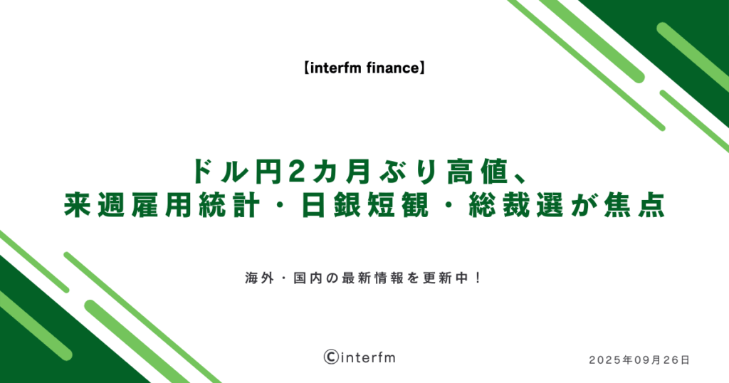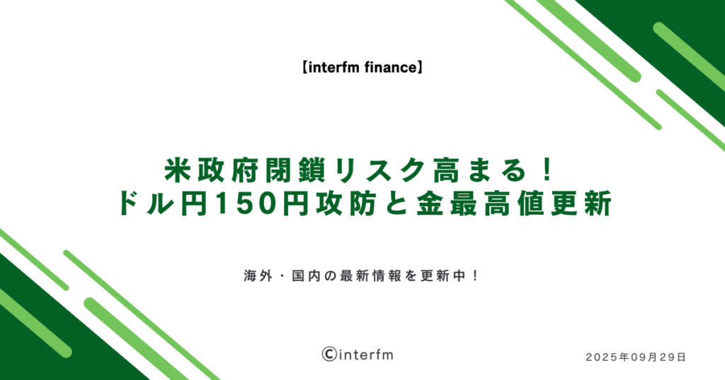 おはようございます!FX編集部の田中です。今週もお疲れさまです。 週明けの海外市場は、米政府機関閉鎖リスクへの警戒感が高まる中、投資家心理がやや慎重になった一日でした。NYダウは前週末から続く政治的不透明感で軟調な展開となり、為替市場ではドル... -