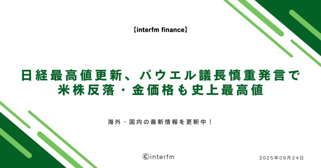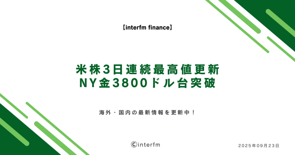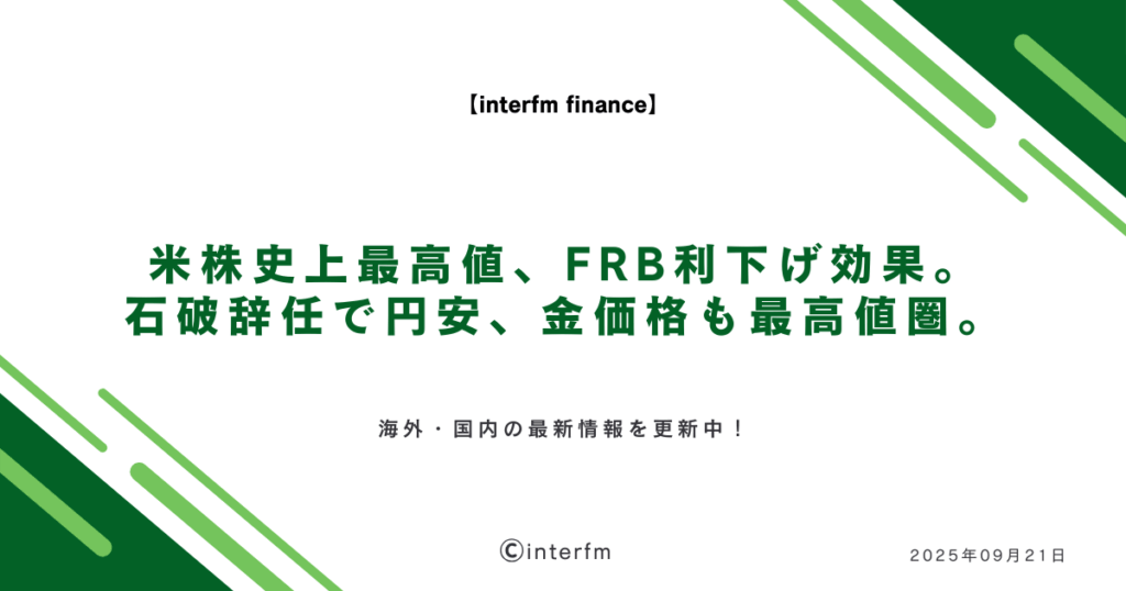 皆さま、おはようございます。FX編集部の田中です。 昨日(9月19日)の海外市場は、まさに「記録づくし」の一日となりました!米国株式市場では主要3指数すべてが史上最高値を更新し、投資家の皆さまにとって嬉しいニュースが続きました。一方で、日銀の政... -