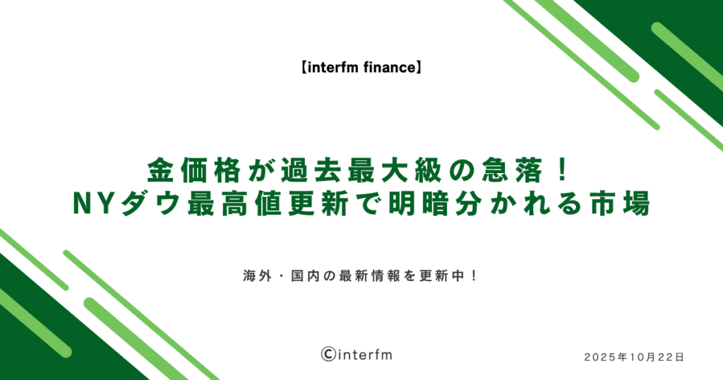 皆さま、おはようございます。FX編集部の田中です。 昨日10月21日の海外市場は、米国株が好調な企業決算を背景に続伸した一方で、金市場では史上最高値から一転して過去最大級の急落が発生するなど、明暗が分かれる展開となりました。また、国内では高市新... -