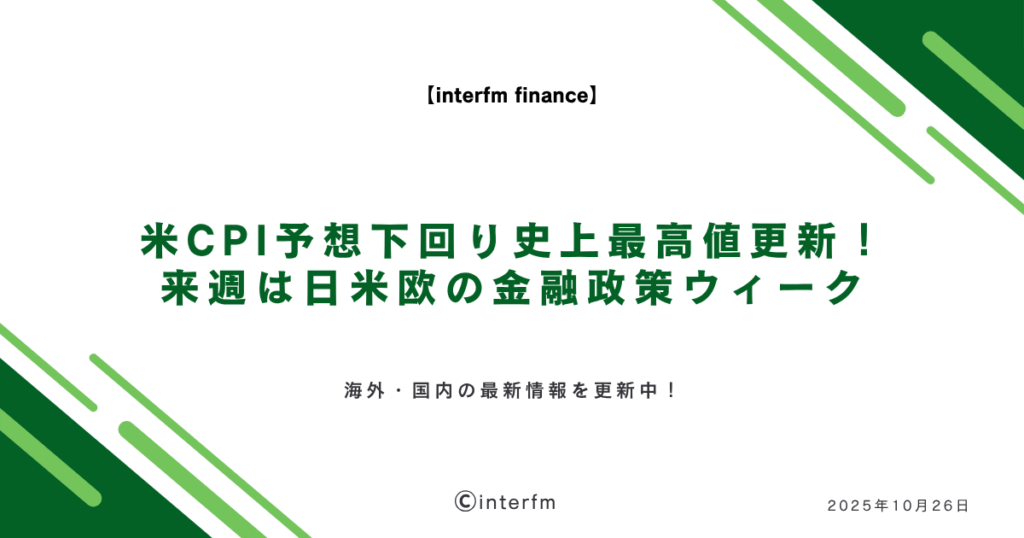 おはようございます!FX編集部の田中です。 週末の日曜日、いかがお過ごしでしょうか。金曜日の海外市場は、米9月CPIの発表を受けて大きく動きました。米国株は史上最高値を更新し、金価格は調整局面が続く中で個人投資家の押し目買いが殺到するなど、各市... -