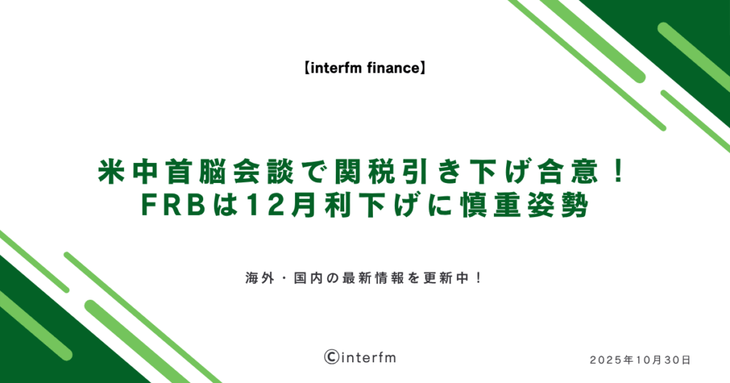 おはようございます!FX編集部の田中です。 昨日(10月30日)の海外市場は、まさに「歴史が動いた日」と言えるような重要なイベントが目白押しでした。米中首脳会談での関税引き下げ合意、FRBと日銀の金融政策決定と、市場を動かす大きなニュースが相次ぎ... -