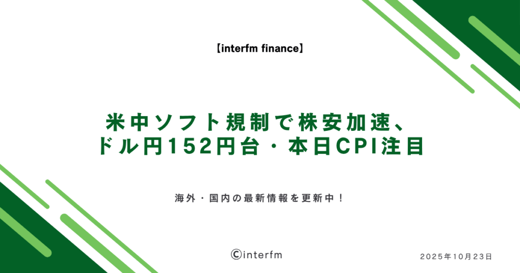 昨日(10月23日)の海外市場は、米中対立の再燃とハイテク株の大幅下落に揺れる展開となりました。トランプ政権による対中ソフトウェア輸出規制の報道を受けて、投資家心理が一気に悪化。NYダウは334ドル安、ナスダックも大きく下落し、リスクオフの流れが... -