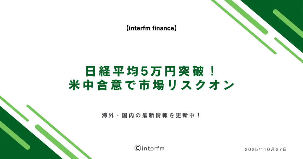おはようございます!FX編集部の田中です☕ 週明けの海外市場は、米中貿易摩擦の緩和期待を背景に、米国株が3日連続で史上最高値を更新する展開となりました。日本株も前日27日に史上初の5万円台突破という歴史的な瞬間を迎えています。本日は、昨夜から今... -