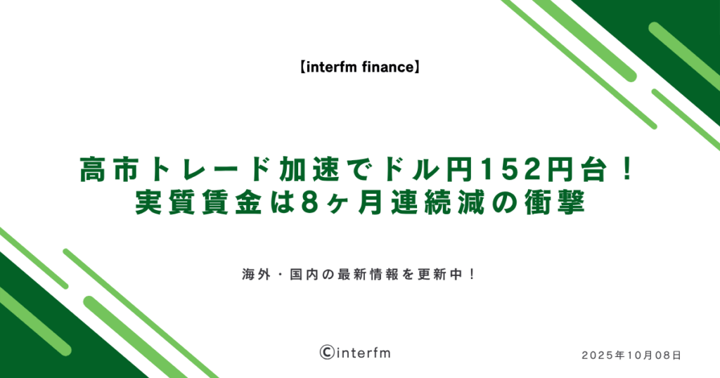 皆さま、おはようございます。FX編集部の田中です。 昨夜の海外市場は、「高市トレード」の勢いが止まらず、ドル円が152円台後半まで上昇する展開となりました。一方で、米国株は政府機関の一部閉鎖による不透明感から軒並み下落となっています。本日も引...