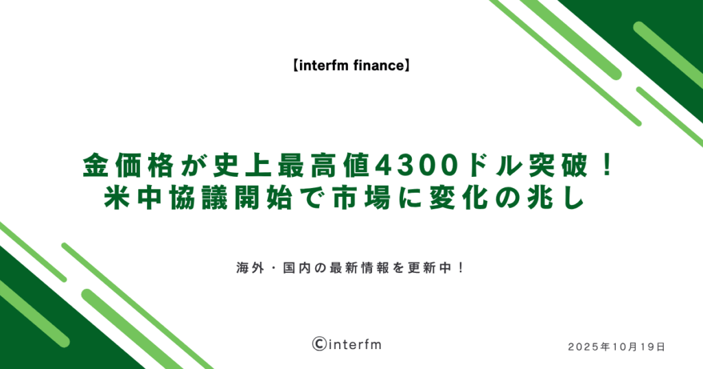 おはようございます!FX編集部の田中です。 週末を挟んで、今週も市場が動き出しましたね。金曜日(10月17日)の海外市場は、米中貿易協議への期待感から全体的にリスクオン基調となりました。特に金価格の史上最高値更新や、トランプ大統領の発言が市場を... -