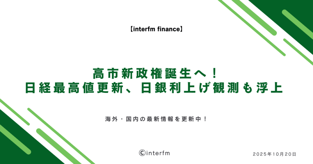 皆さま、おはようございます!FX編集部の田中です。 週明けの海外市場は、日本の政治情勢が大きく動いたことで、為替・株式市場ともに活発な動きとなりました。前週末のNY市場では主要3指数が揃って上昇し、リスクオン(投資家のリスク選好)の流れが継続... -