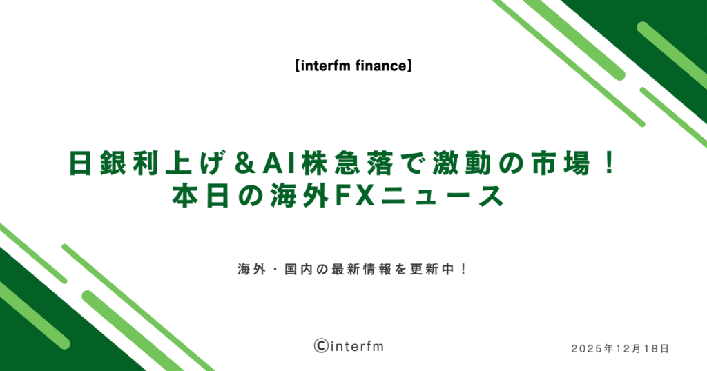 皆さま、おはようございます。FX編集部の田中です。 昨日12月19日の海外市場は、日銀の利上げ決定後に円安が急進行する波乱の展開となりました。植田総裁の慎重姿勢が市場に伝わると、ドル円は一時157円台後半まで急落。約1ヶ月ぶりの円安水準となり、為替... -
