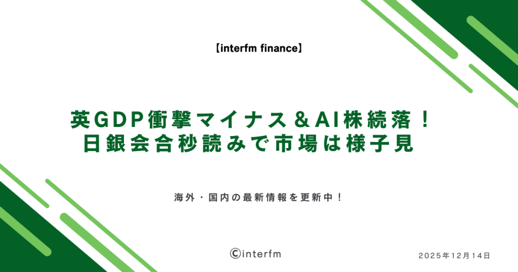 おはようございます!FX編集部の田中です。 昨日13日(金)の海外市場は、週末を控えて全体的に様子見ムードが強まる展開となりました。前日に急落したAI関連株への懸念が継続し、米国株は軟調な展開が続いています。また、英国からは予想外のマイナス成長... -