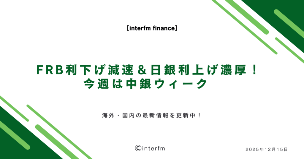 おはようございます!FX編集部の田中です。 週明けの市場は、先週末のFOMC結果を受けた調整ムードが続いています。本日は前週末15日(月)の海外市場の動きと、今週の注目イベントについてお伝えします。今週は日米の金融政策会合が重なる重要な週となりま... -