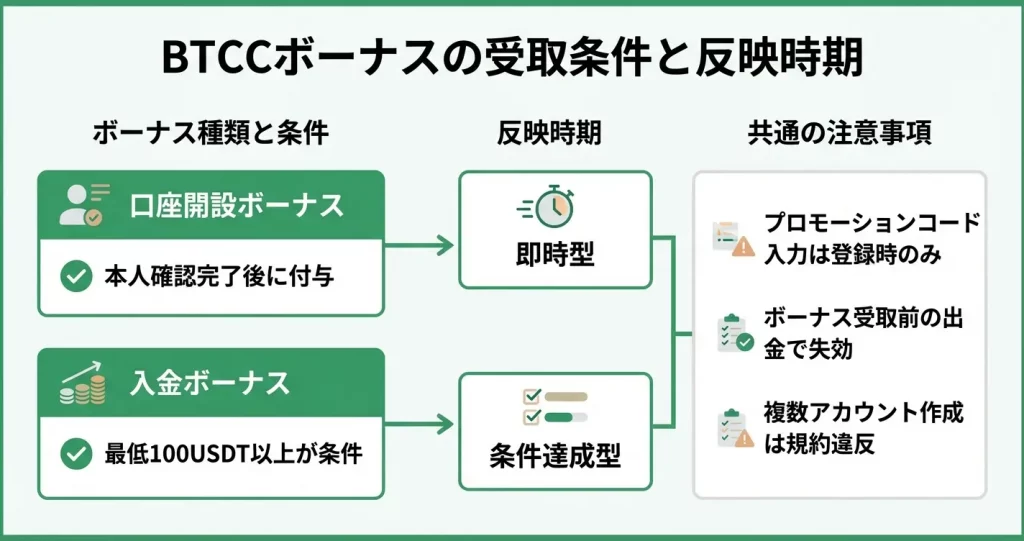 BTCCボーナスの受取条件と適用タイミング