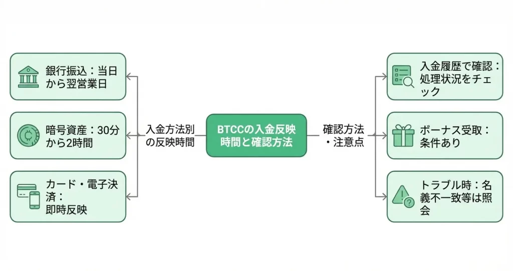 入金が反映されない場合は、まずBTCCの入金履歴で処理状況を確認してください。