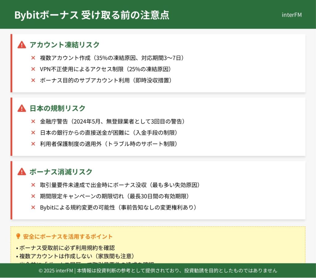 Bybitのボーナスを活用する際には、いくつかのリスクと注意事項を理解しておく必要があります。