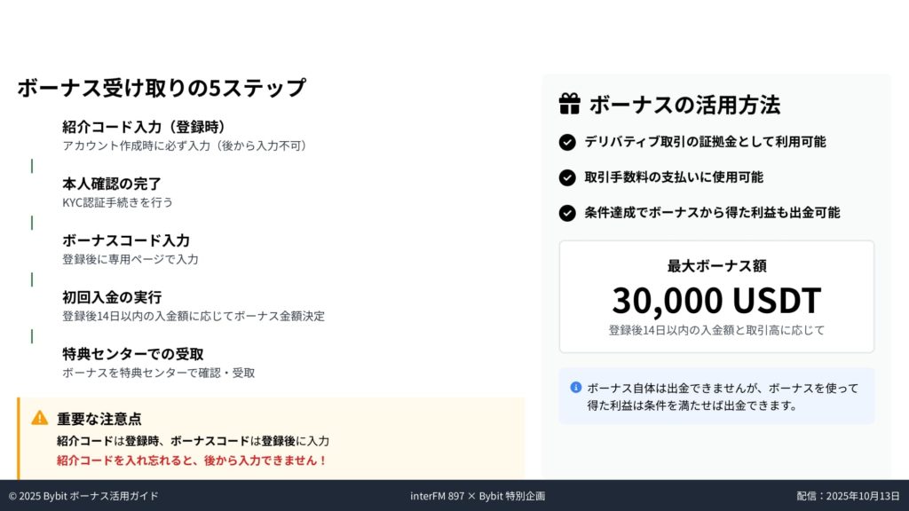 - 正しい受取手順:紹介コード経由の口座開設と条件達成