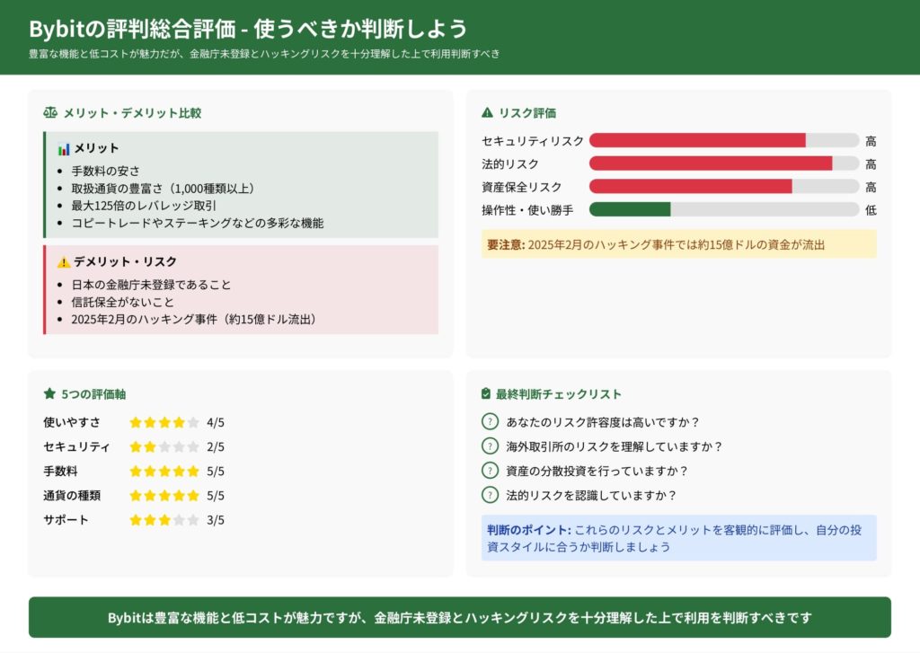 この記事を読めば、Bybitのリスクとメリットを正確に理解し、あなたの取引スタイルに本当に合う取引所かどうか自信を持って判断できるようになります。
