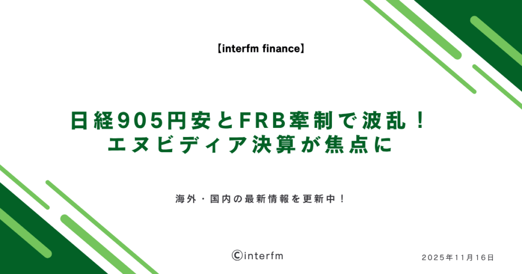 おはようございます!FX編集部の田中です 昨日の市場は、AI・半導体関連株の調整が続き、やや重たい展開となりました。ただ、日経平均が5万円の大台を守ったことで、市場には底堅さも感じられます。 それでは、11月14日-15日の主要な海外市場の動きを、重... -