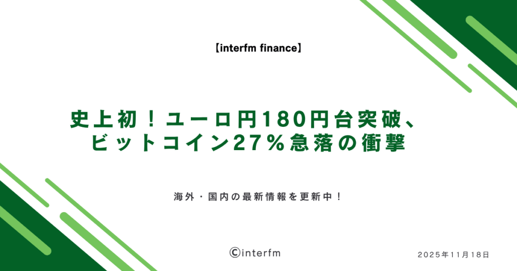おはようございます!FX編集部の田中です。 週明けの海外市場は、投資家の皆さまにとって少し厳しい展開となりました。米国の利下げ期待が後退したことで、株式市場は全面安に。為替市場では円安が一段と進み、ユーロ円は史上初の180円台を記録するなど、... -