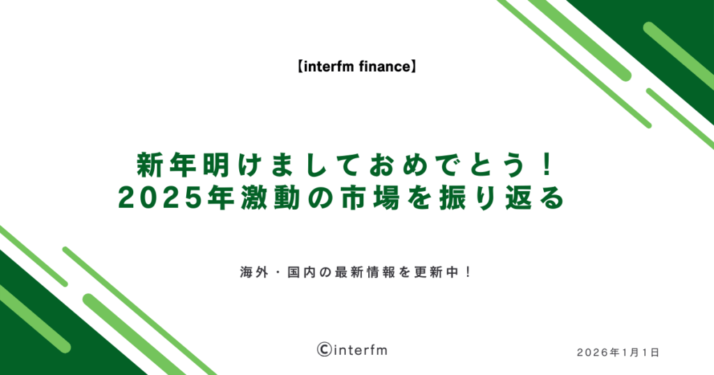 おはようございます!新年のマーケットをチェックしましょう FX編集部の田中です。2026年、あけましておめでとうございます!本日1月1日は日本市場・海外主要市場ともに年始休場となっておりますので、年末12月31日の海外市場の動向と、2025年の振り返りを... -