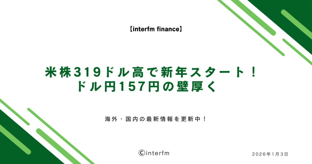 おはようございます! FX編集部の田中です。2026年最初の市場レポートをお届けします。 昨日1月2日は、米国市場が2026年の取引を開始し、NYダウが319ドル高と5営業日ぶりに反発する好調なスタートとなりました。日本市場は正月三が日のため本日も休場です... -