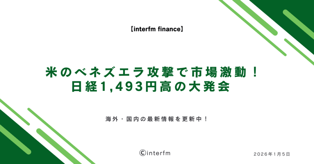 おはようございます!FX編集部の田中です。 週明けの市場は、週末のベネズエラ情勢を受けて地政学リスクが意識される展開となりました。NYダウが過去最高値を更新し、その流れを受けて日経平均も史上最高値を更新するなど、リスクオン相場が継続しています... -
