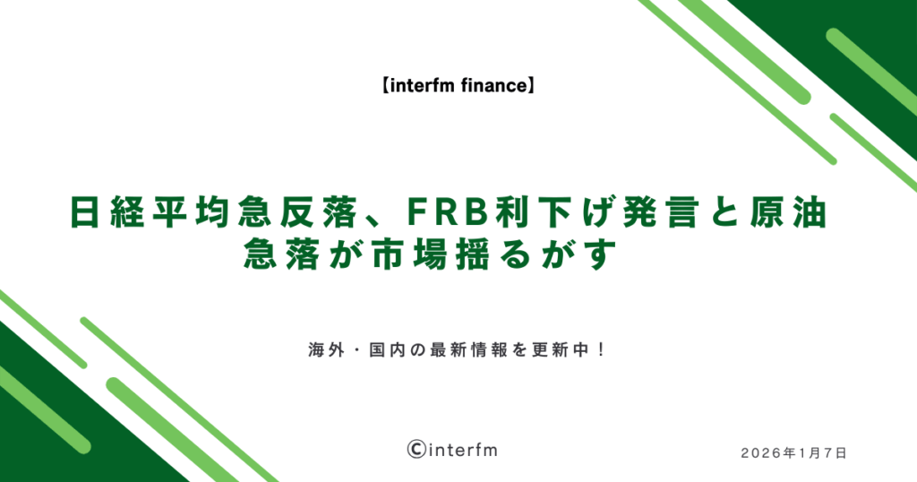 おはようございます!FX編集部の田中です 昨日(1月7日)の海外市場は、まさに「波乱の火曜日」となりました。日経平均が史上最高値更新からわずか1日で556円の急落、さらにトランプ大統領のベネズエラ原油発言で原油市場も大きく揺れる展開となっています... -