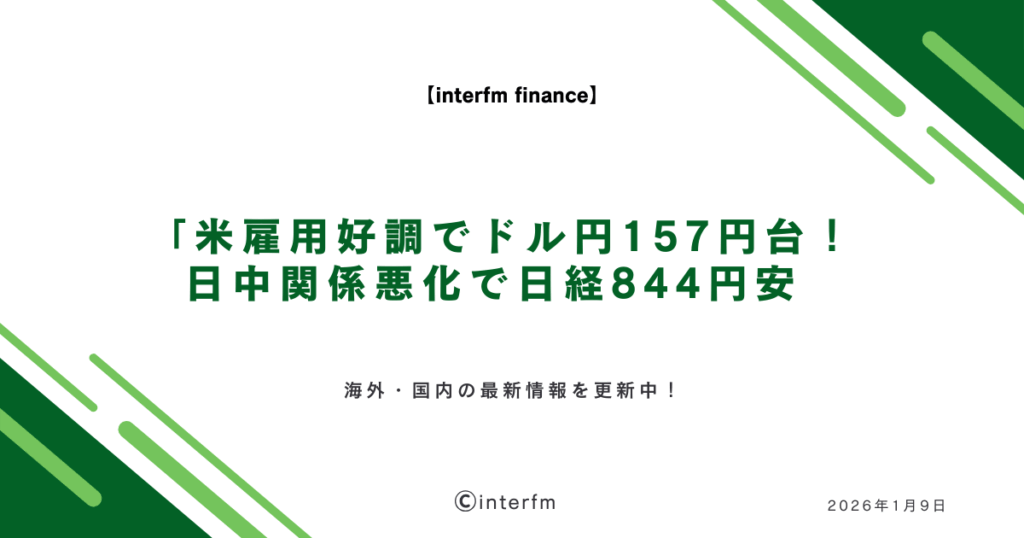 おはようございます!FX編集部の田中です。 1月8日の海外市場は、米雇用指標の好結果でドル全面高となった一方、日中関係の悪化が日本株を直撃する波乱の展開となりました。ドル円は157円台まで上昇し、年初から円安トレンドが継続しています。本日は米雇... -