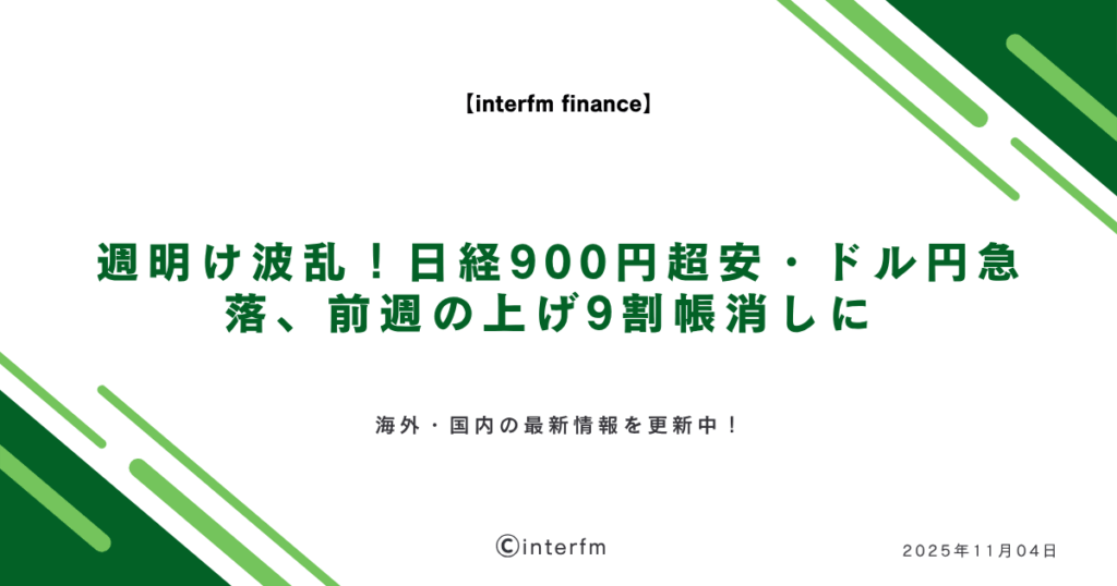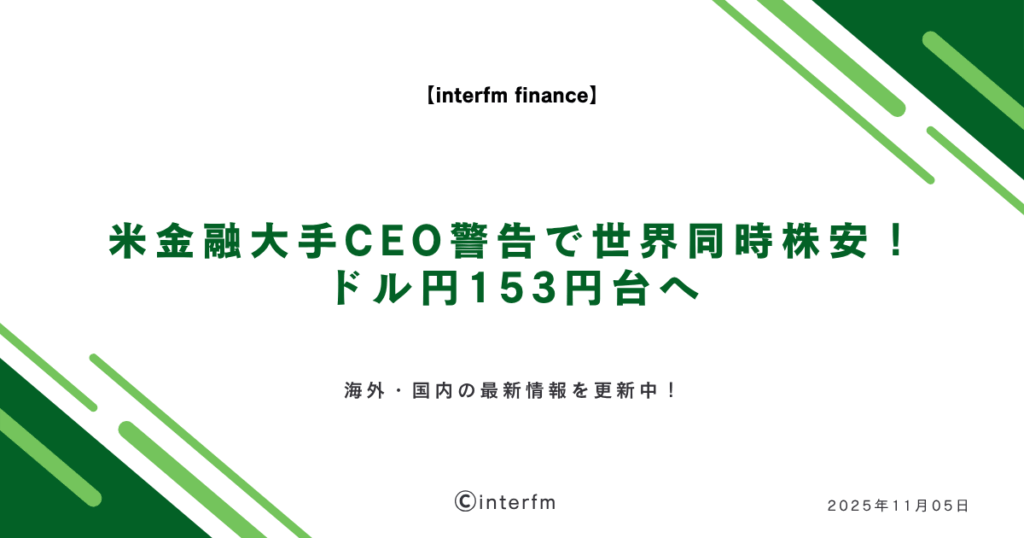 みなさま、おはようございます!FX編集部の田中です。 昨日の海外市場は、まさに「激動の一日」となりました。米大手金融機関のトップによる株価調整リスクの警告を受けて、世界的に株式市場が大きく下落する展開となっています。日経平均も1,200円を超え... -