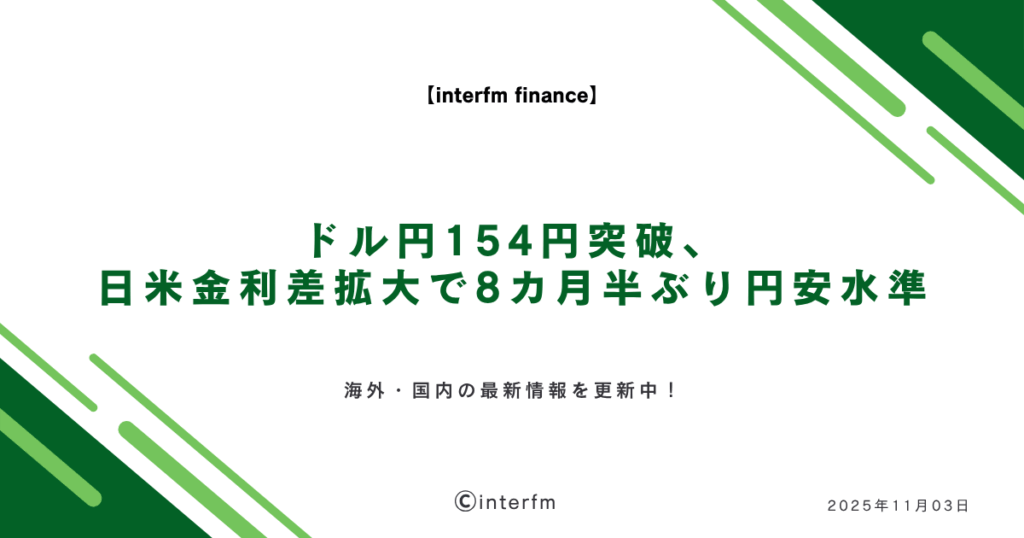 こんにちは!FX編集部の田中です。 週明けの月曜日、いかがお過ごしでしょうか。週末を挟んで迎えた本日ですが、先週末から引き続きドル円は154円台での推移が続いています。日米の金融政策の違いが鮮明になり、円安圧力が強まっている状況です。 昨日11月... -