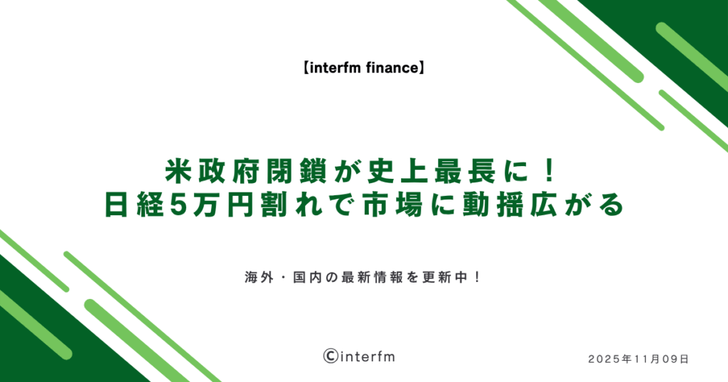 皆様、おはようございます。FX編集部の田中です。 金曜日の海外市場は、米国政府機関閉鎖の長期化による経済データ不足が引き続き市場の重荷となりました。ドル円は153円台で推移し、NYダウは小幅続伸で週を終えています。一方、今週の日経平均は大きく調... -