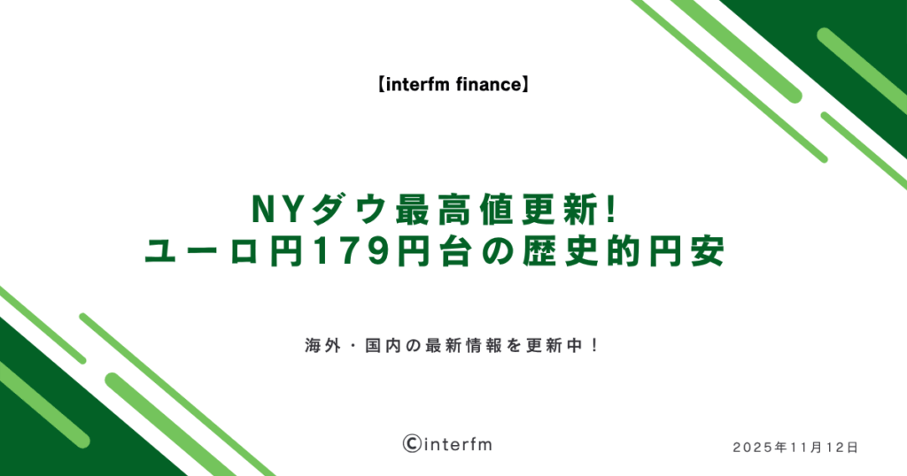 おはようございます!FX編集部の田中です。 11月12日火曜日の朝を迎えました。昨日の海外市場は、米政府閉鎖終了への期待が高まる中、リスクオン相場が展開されました。NYダウが史上最高値を更新する一方で、為替市場では円安が全面的に進行し、ユーロ円が... -
