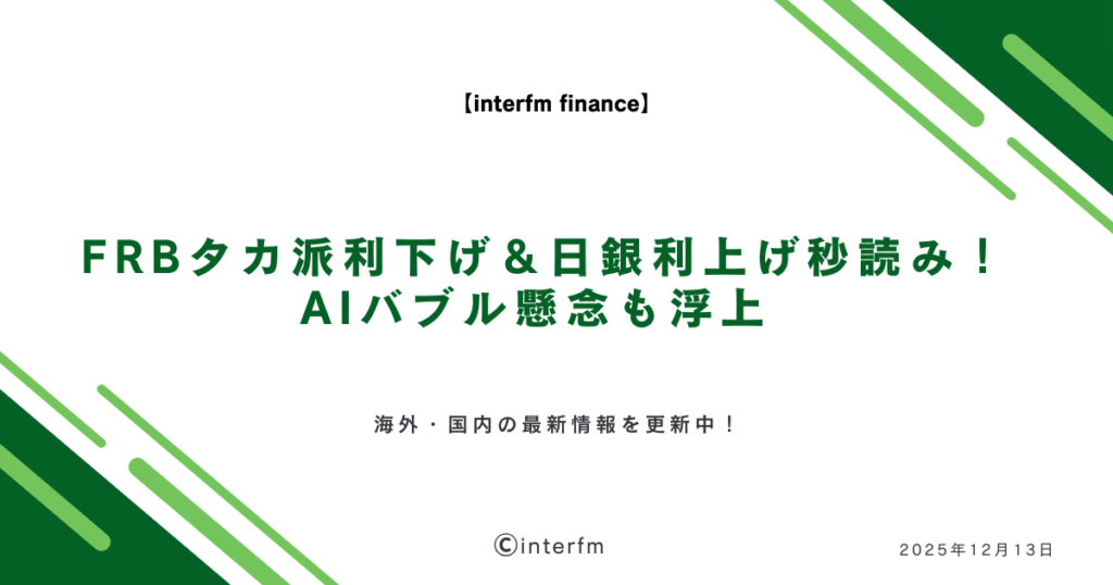 皆さま、おはようございます。FX編集部の田中です。 昨日12月19日の海外市場は、日銀の利上げ決定後に円安が急進行する波乱の展開となりました。植田総裁の慎重姿勢が市場に伝わると、ドル円は一時157円台後半まで急落。約1ヶ月ぶりの円安水準となり、為替... -