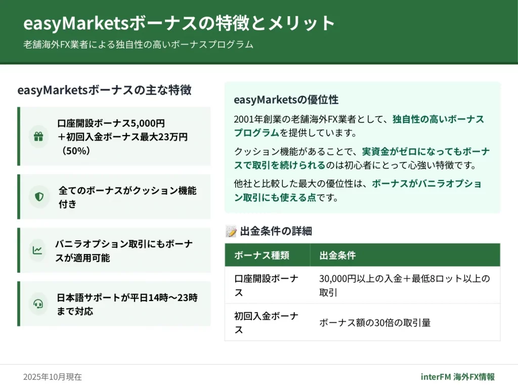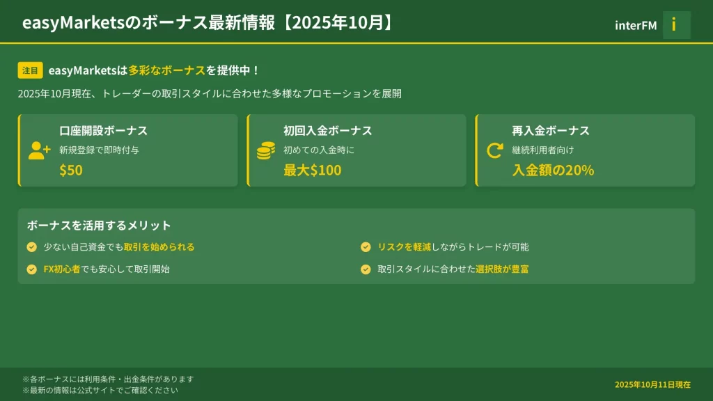 この記事では、2025年11月最新のeasyMarketsボーナス情報を完全網羅。