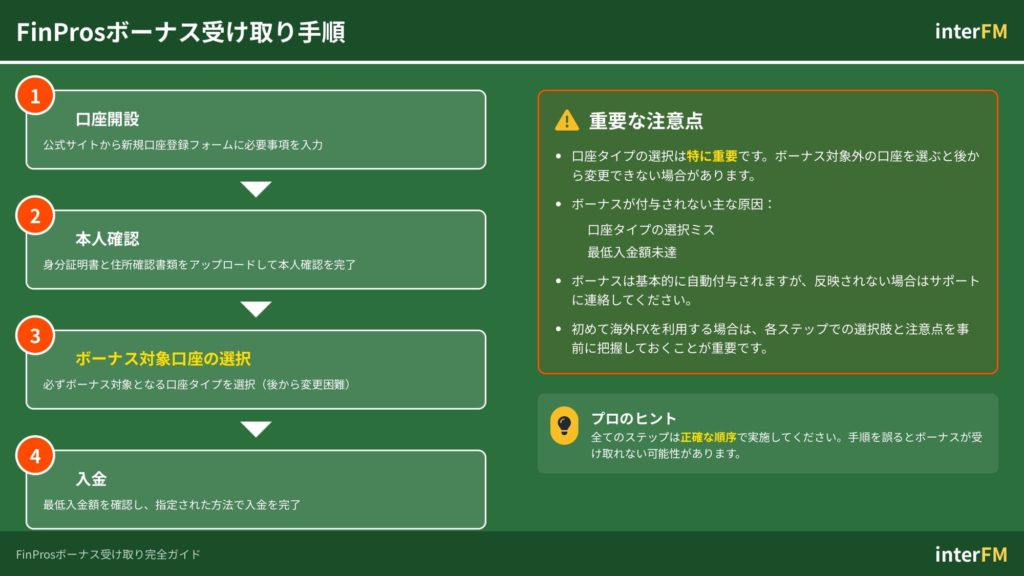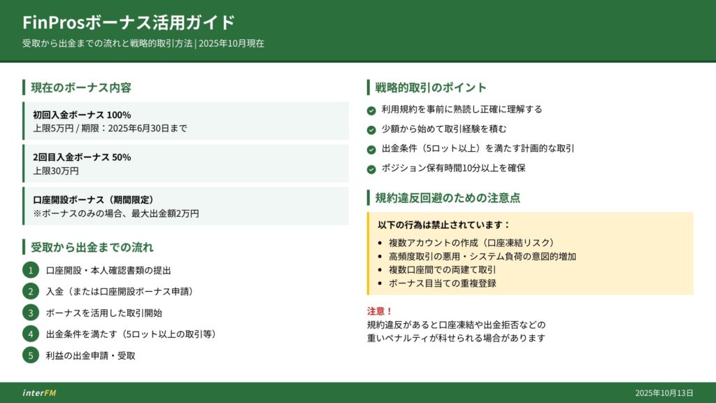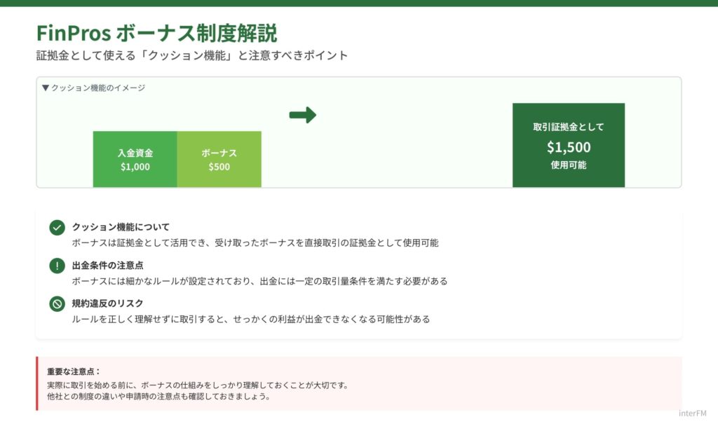 最新のボーナス情報や詳細な利用規約については、必ずFinPros公式サイトで確認し、不明点があればカスタマーサポートに問い合わせてください。