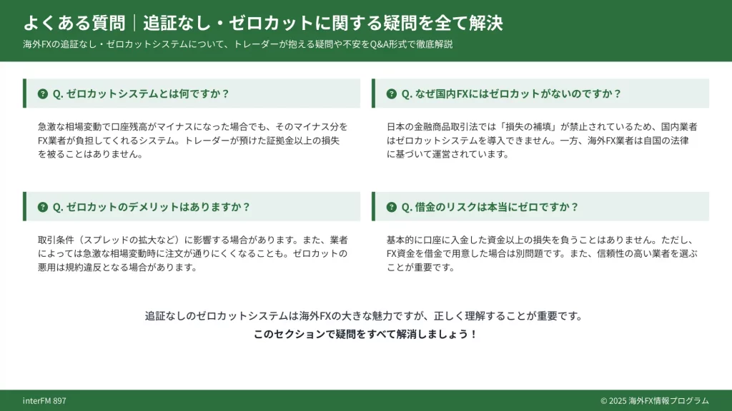 高レバレッジ環境では相場急変時のリスクが高まるため、ゼロカットシステムはトレーダー保護の観点からより重要な役割を果たしています。