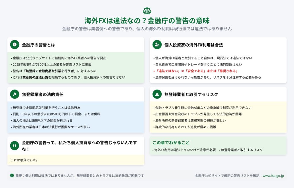 海外FXは最大1000倍のレバレッジが魅力ですが、金融庁が300社以上に警告を発出する深刻なリスクが存在します