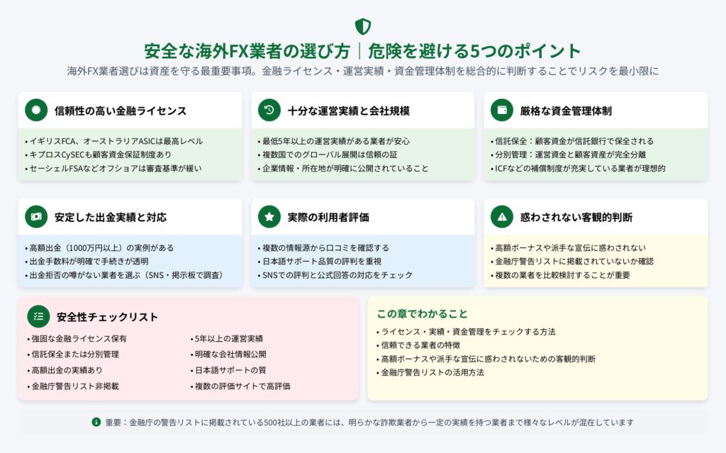 この記事では、海外FXがなぜ危ないと言われているのかを7つの理由を含め詳しく解説し、金融庁の警告の真意、危険性や安全な業者の選び方・見分け方、トラブル回避のための5つの必須対策まで、実例とデータを交えて徹底的に解説します。