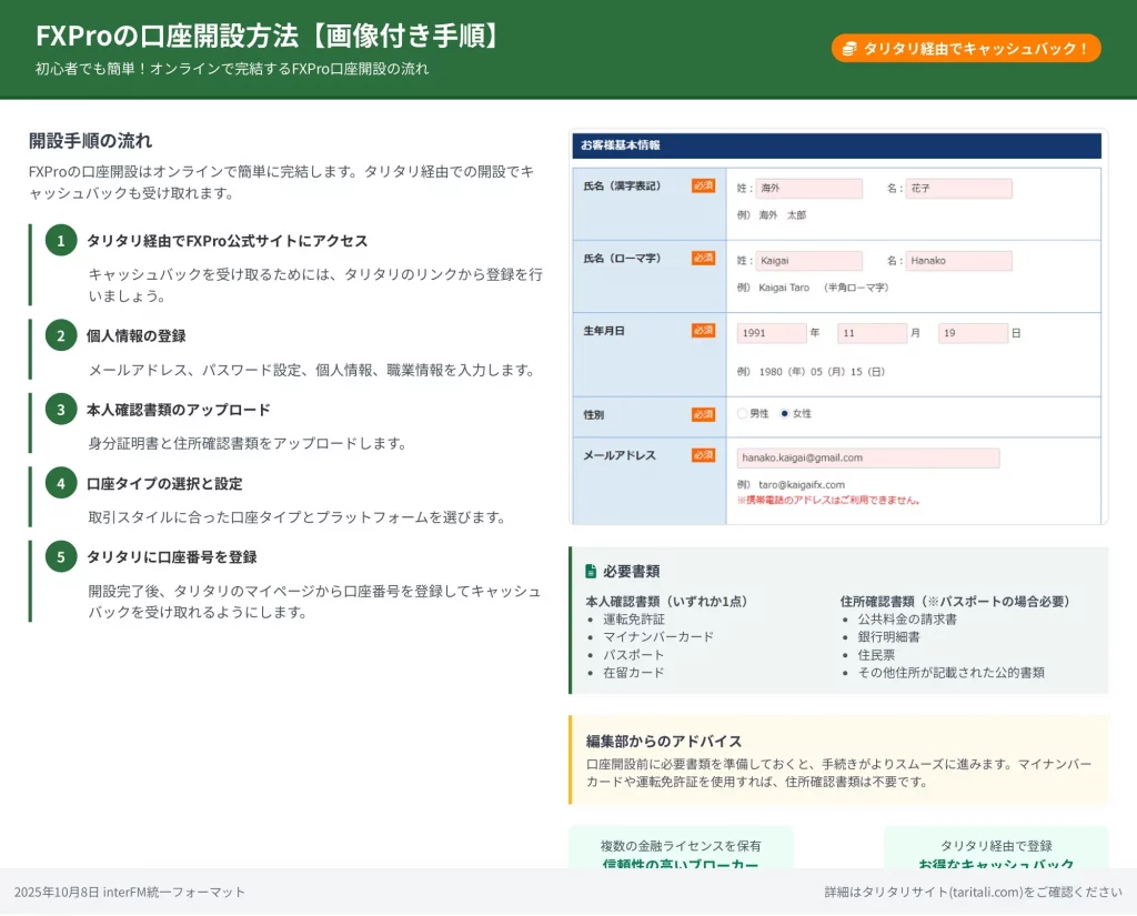 この記事を読めば、FXProが本当にあなたに適した業者なのか、安全に口座開設するにはどうすればいいのか、そしてお得に取引を始めるための具体的な手順まで、すべて明確に判断できるようになります。