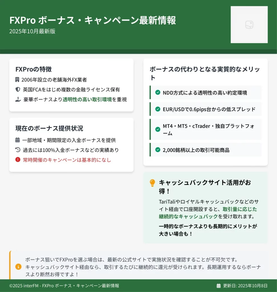 A: FXProは基本的にボーナスキャンペーンを実施していません。