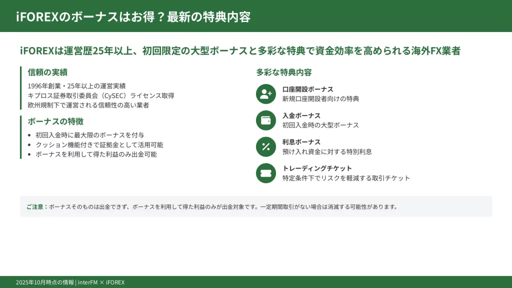 iFOREXは業界でも有数の豪華なボーナスを常時提供しています。