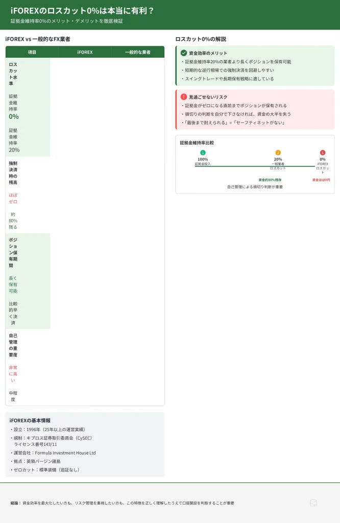 iFOREXのロスカット水準は証拠金維持率0%に設定されており、これは業界でも最も有利な水準の一つです。