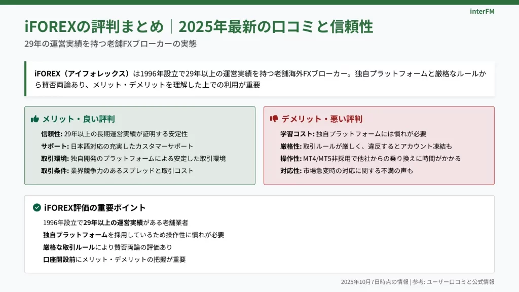 結論:iFOREXは運営29年の老舗だが独自ルールに注意が必要