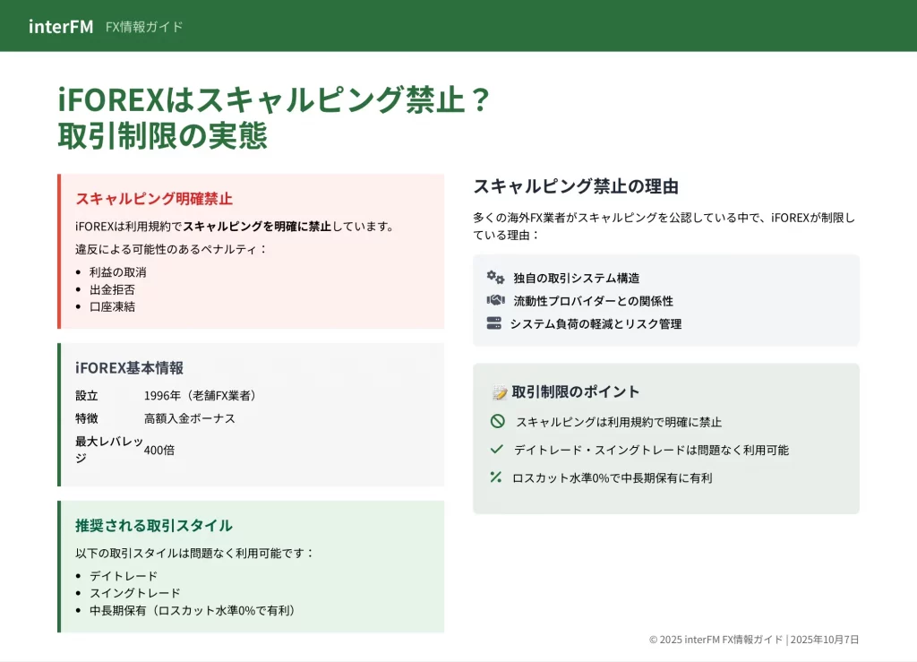 iFOREXでは、スキャルピング(短期売買)とEA(自動売買ツール)の利用が明確に禁止されています。
