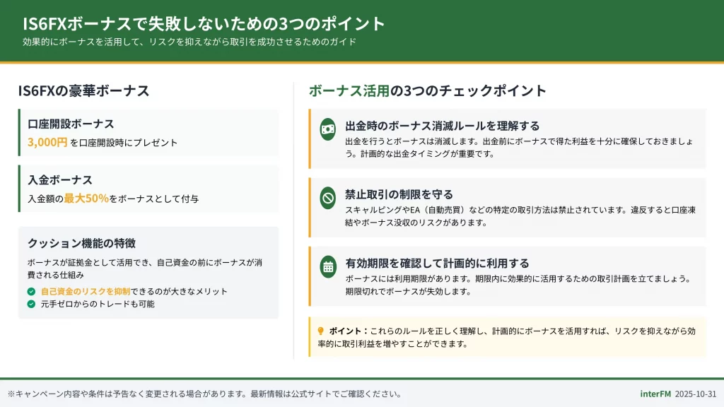 この記事を読めば、IS6FXのボーナスを1円も無駄にせず受け取り、規約違反を避けながら安全に利益を出金できるようになります。