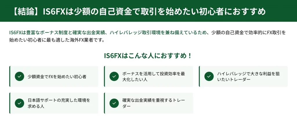 【結論】IS6FXは少額の自己資金で取引を始めたい初心者におすすめ