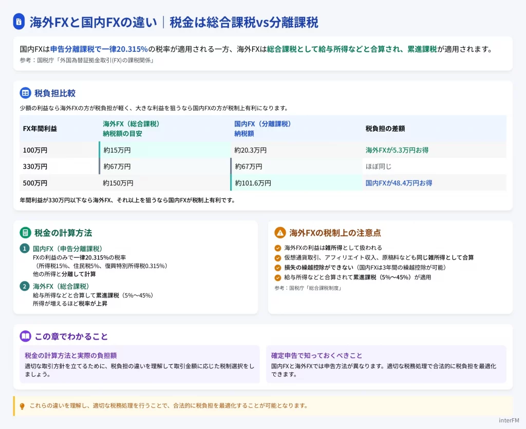 この記事では、税金や信頼性など海外FXと国内FXの違いを徹底比較し、それぞれのメリット・デメリットを分かりやすく解説します。