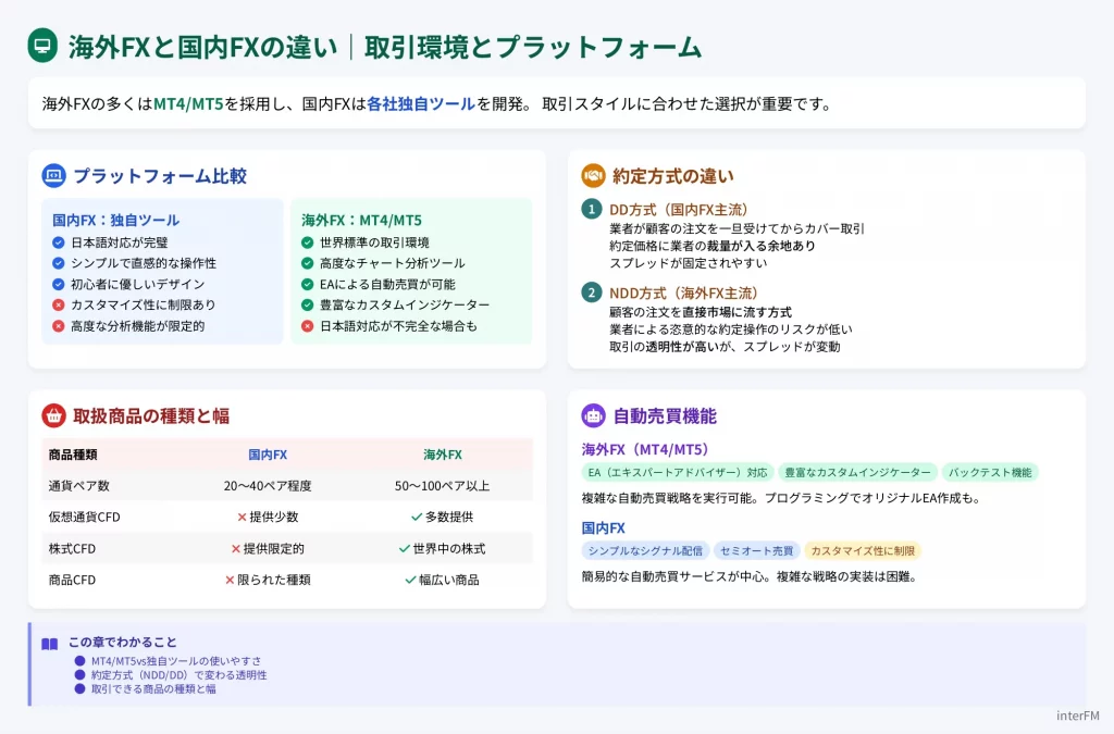 海外FXと国内FXは似ているようで、実際には法的規制から取引条件まで明確に異なります。