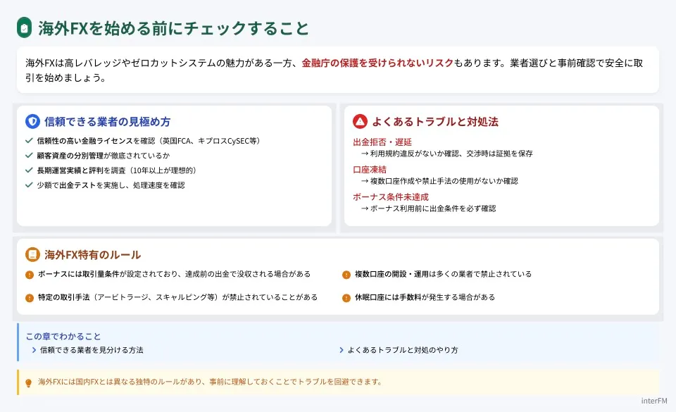 海外FXに対する不安の多くは誤解や偏見から生じているケースも多いんです。正確な情報を知ることで、これらの不安を解消しましょう!