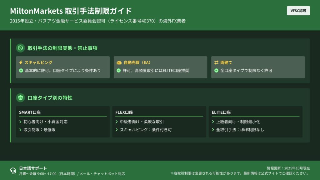 MiltonMarketsは2015年設立、バヌアツ金融サービス委員会(VFSC)のライセンス(番号40370)を保有する海外FX業者です。