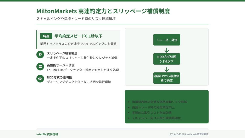 他の海外FX業者で約定品質に問題を感じているトレーダーにとって、MiltonMarketsのスリッページ保証は魅力的です。