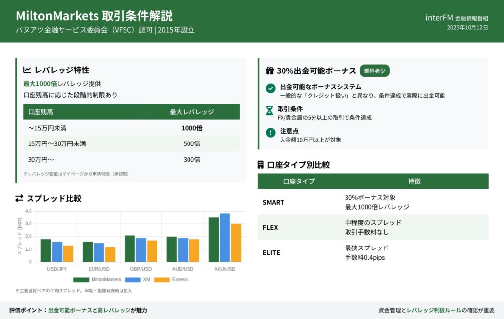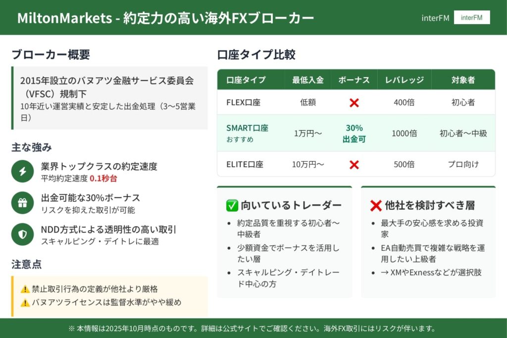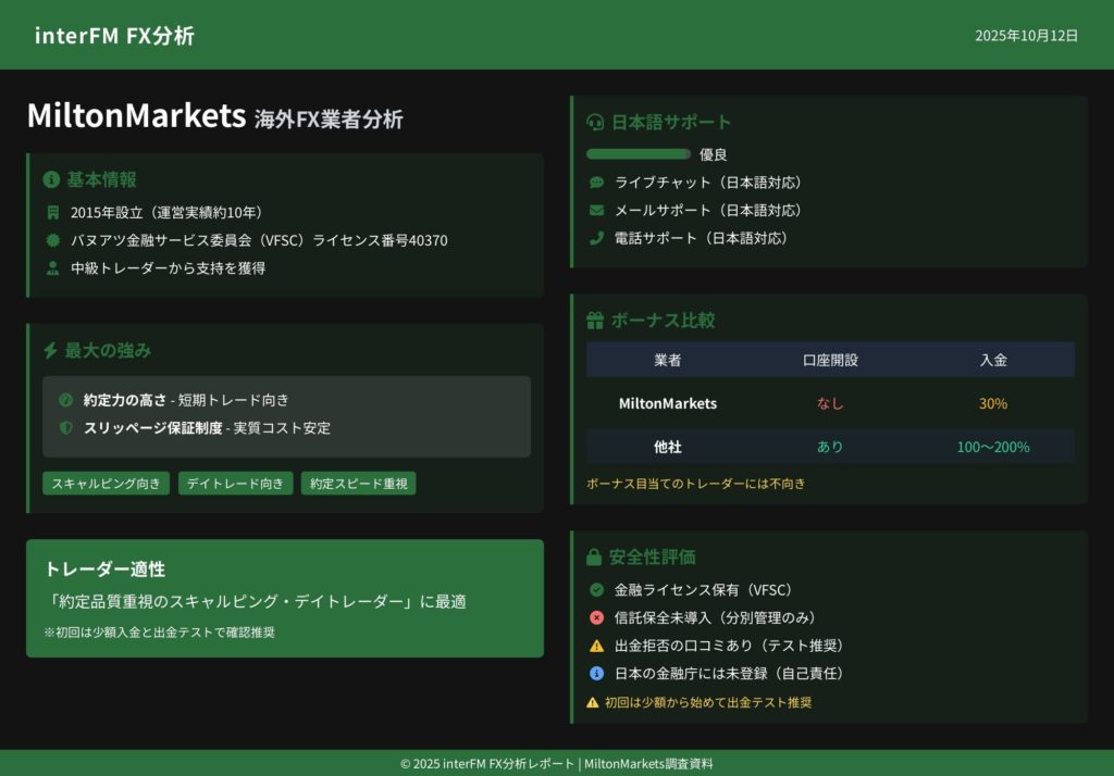 編集部注:MiltonMarketsは大手ほどの日本語情報や教育コンテンツがないため、ある程度自分で情報収集できるリテラシーが求められます。